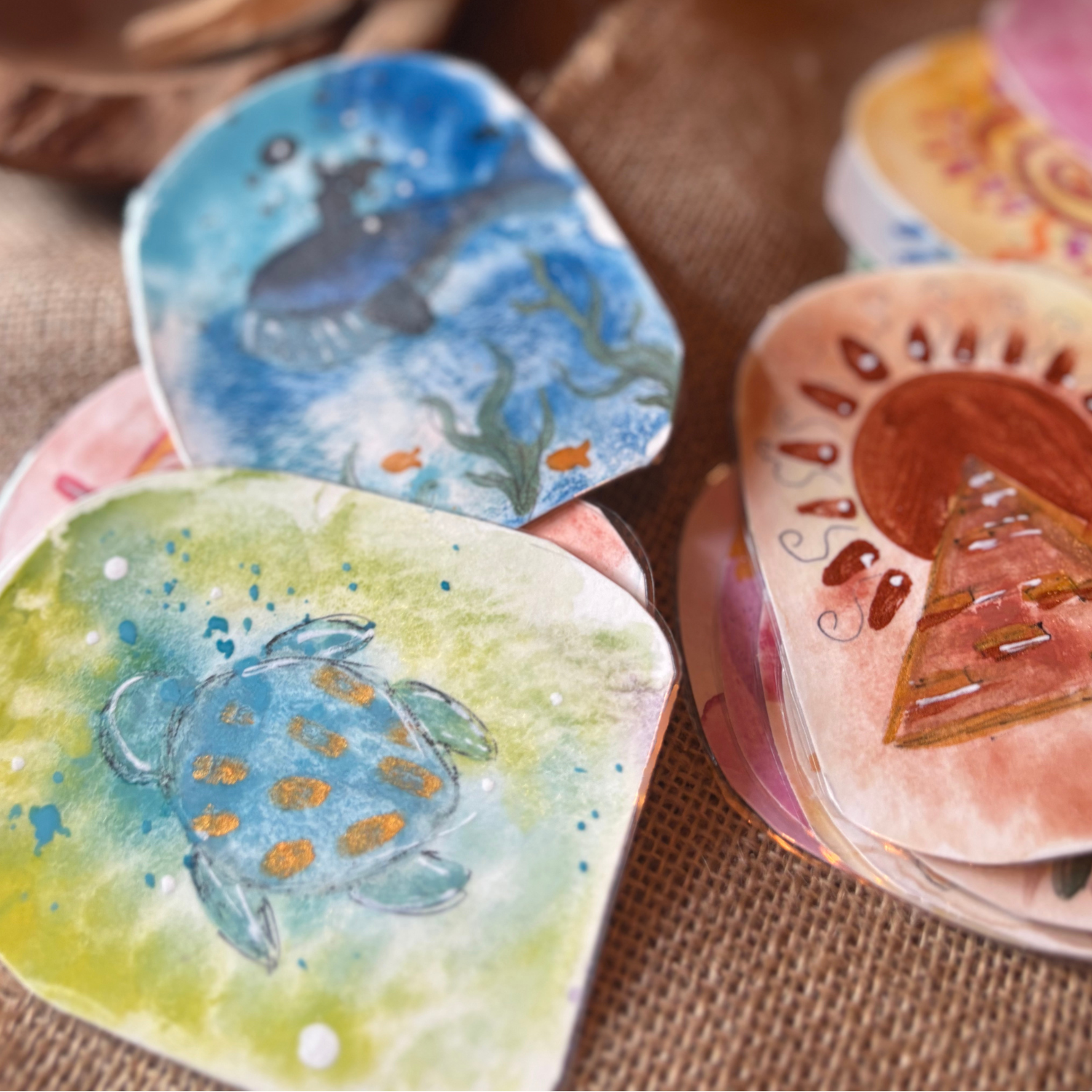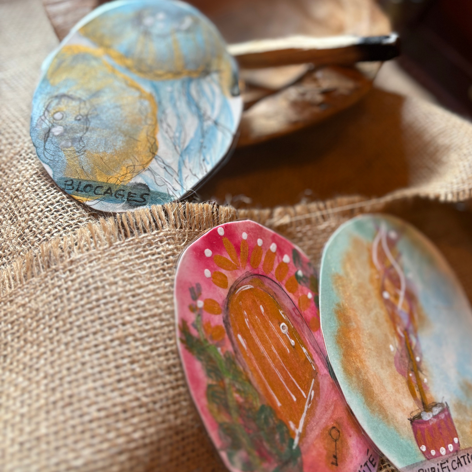 16 cartes peintes à la main (formes, couleurs, symboles canalisés pour toi)